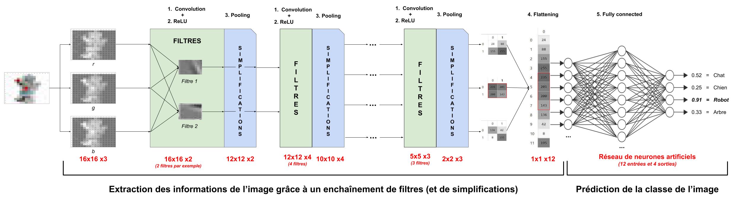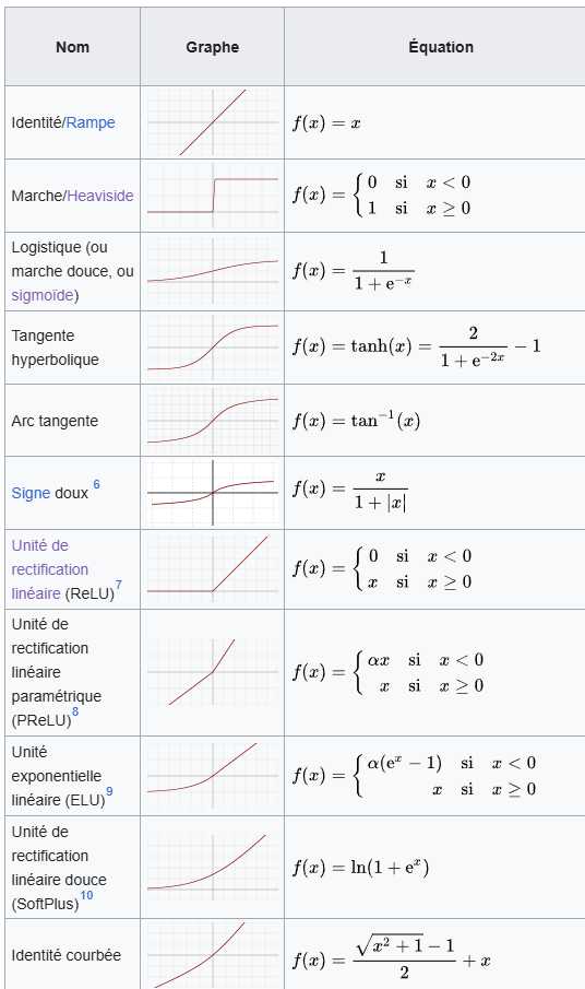 Les w sont les pondérations à trouver via l'apprentissage automatisée du modèle.