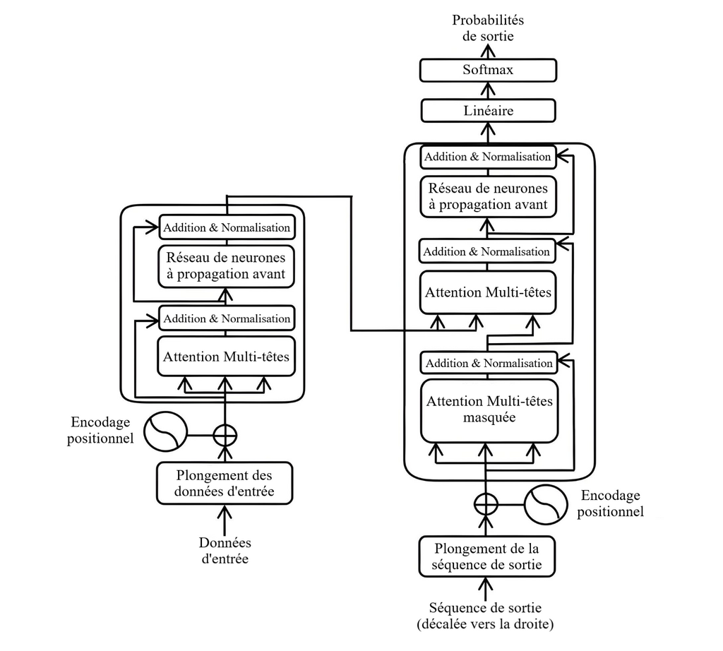 Plusieurs couches de neurones traversés et reliés entre eux